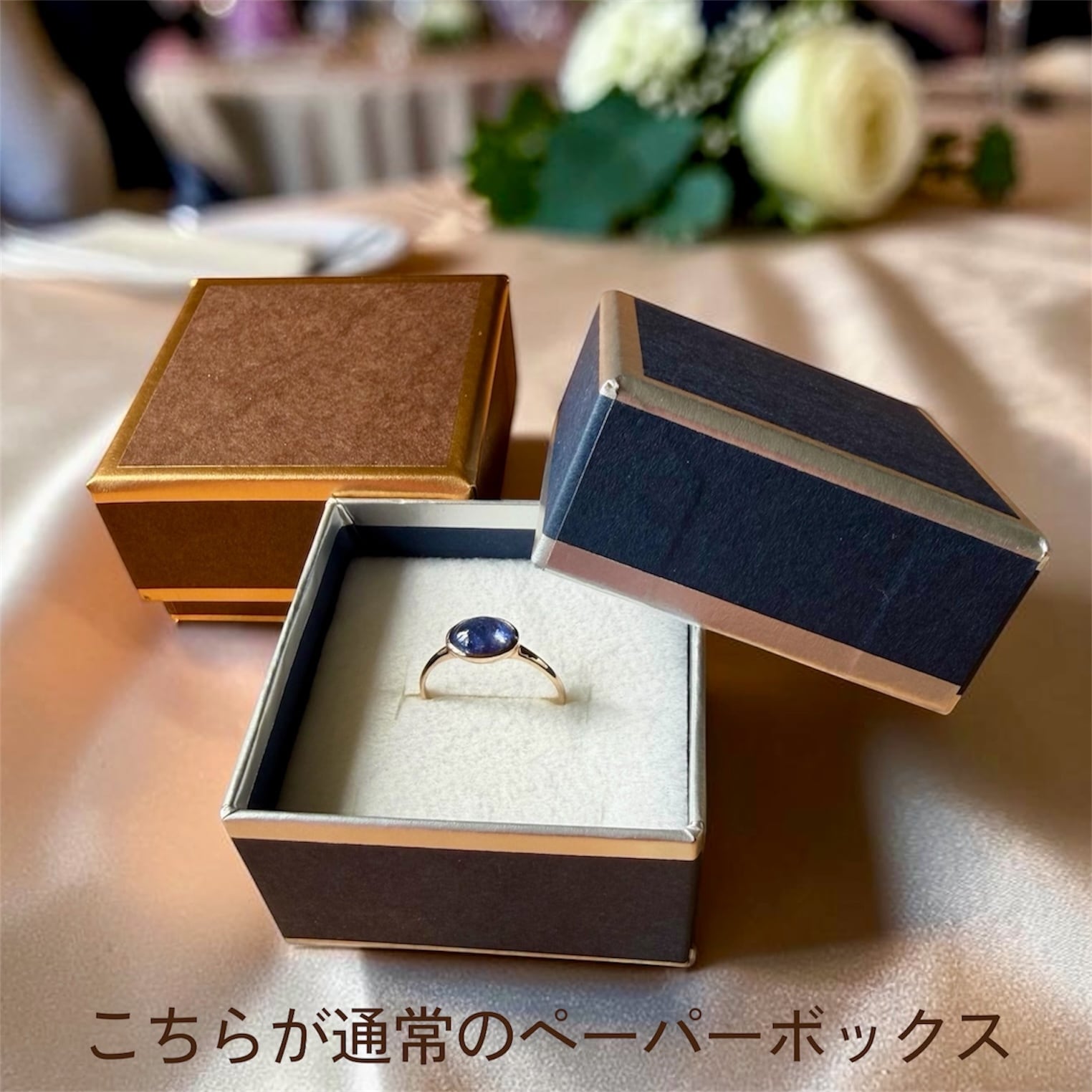 お石のサイドからも光が差し込むデザインにいたしましたので、とてもキラキラと輝いて美しく仕上がりました。